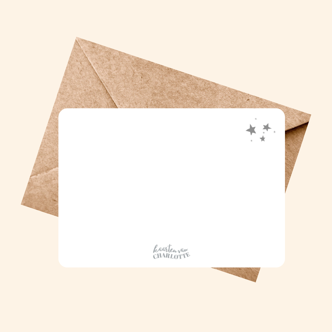 De kaart wordt met enveloppe van kraftpapier geleverd. A6-formaat. Getekend door Charlotte.