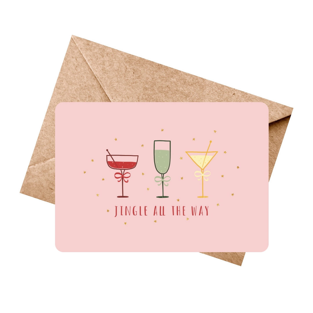 Een kerstkaartje met leuke kleurencombinatie en proostglaasjes, wie verdient er wel een proost-momentje?