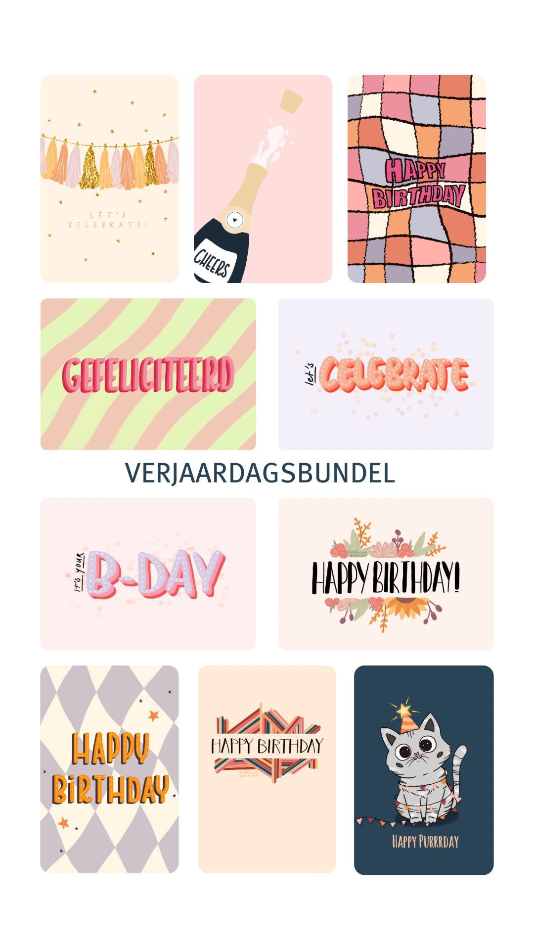 Waarom kiezen als het ook makkelijk in één keer kan? Vul je voorraad aan met deze leuke en handige verjaardagbundel, zo pak je niet meer mis! De bundel bestaat uit 10 verjaardagskaarten met 10 enveloppen.